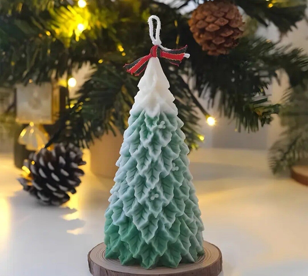 Dale un toque a tu hogar con estas hermosas velas con formas de árbol de Navidad.